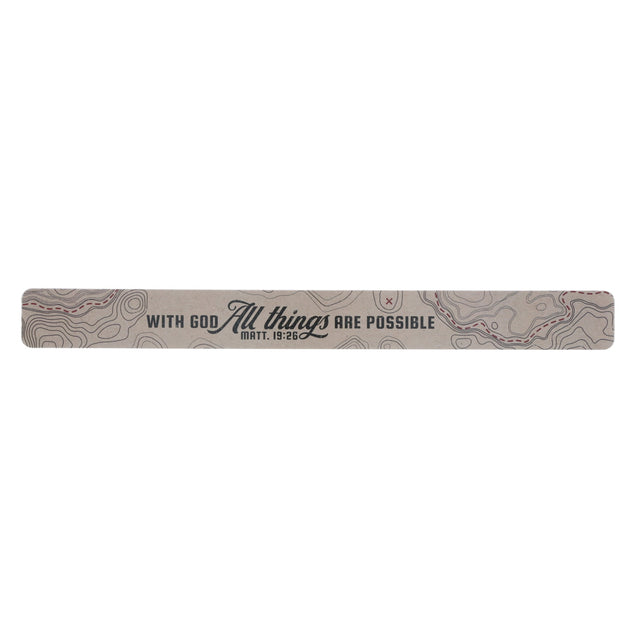 Fill your life with inspiration when you attach the With God All Things Are Possible Large Magnetic Strip to a car, door frame, whiteboard, or refrigerator. The laminated finish protects the color and construction.