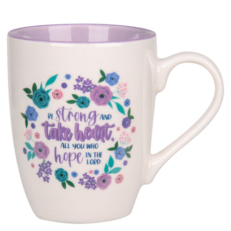 Be Strong and Take Heart, All You Who Hope in the Lord Ceramic Mug with Lilac Interior