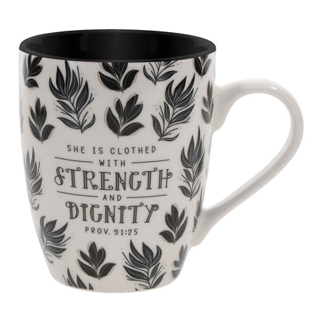 She Is Clothed with Strength and Dignity Ceramic Mug with Black Interior