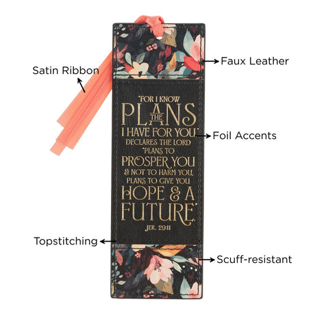 In stockRegular price R389.00Unit price /UnavailableFor I Know the Plans I Have For You Black Faux Leather Bookmark