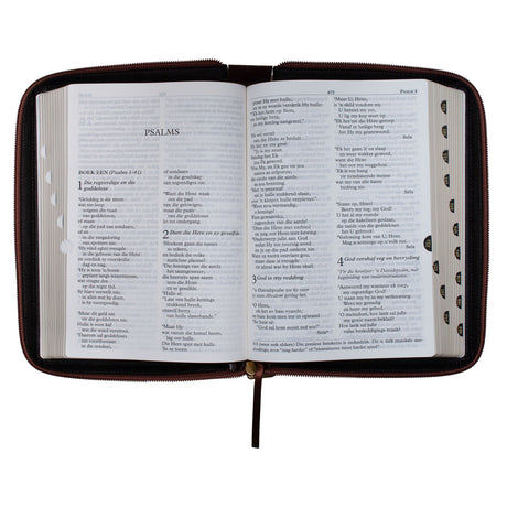 In stockSale price R499.00 Regular price R599.00Unit price /Unavailable NLV Neutbruin Kunsleer Bybel Grootdruk Met Ritssluiter & Duimgrepe