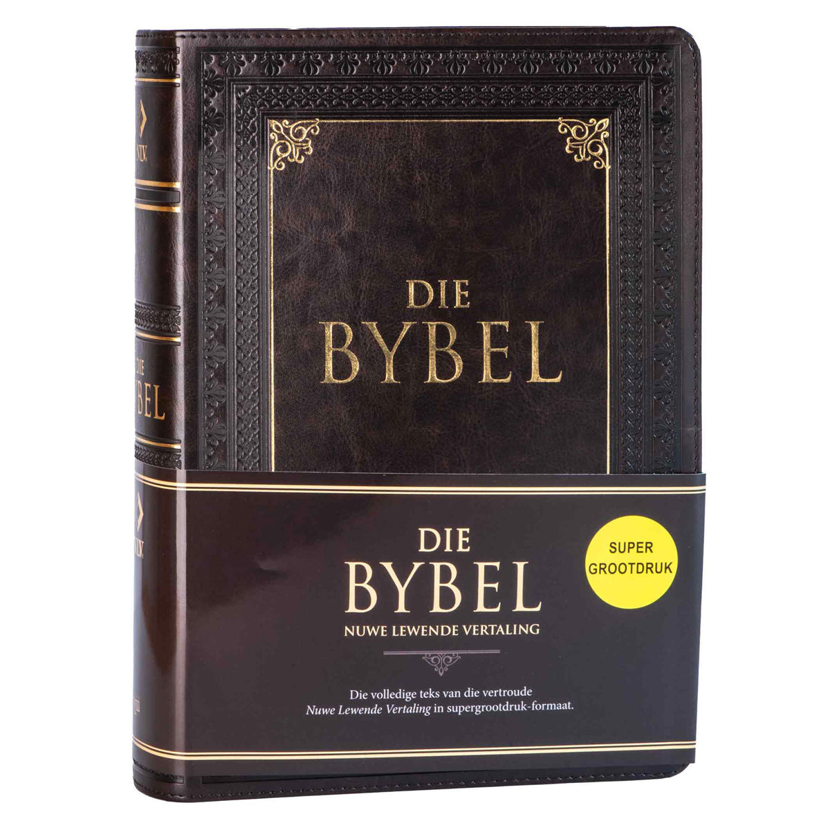 Die Super Grootdruk-uitgawe bevat die volledige teks van die vertroude Nuwe Lewende Vertaling. Dit kombineer Skrifgetrouheid en lesersvriendelikheid om die boodskap van die grondteks in eietydse Afrikaans vir vandag se leser weer te gee. Agt volkleur-kaarte is ook ingesluit.