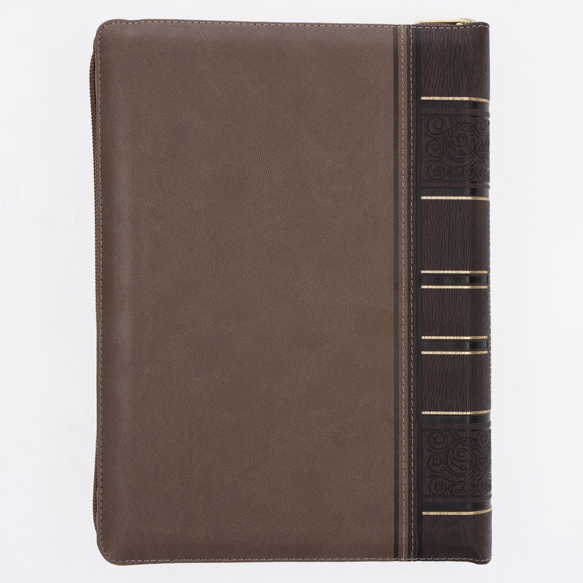 NLV Tweekleur Bruin Kunsleer Bybel Grootdruk Met Ritssluiter & Duimgrepe is backordered and will ship as soon as it is back in stock.