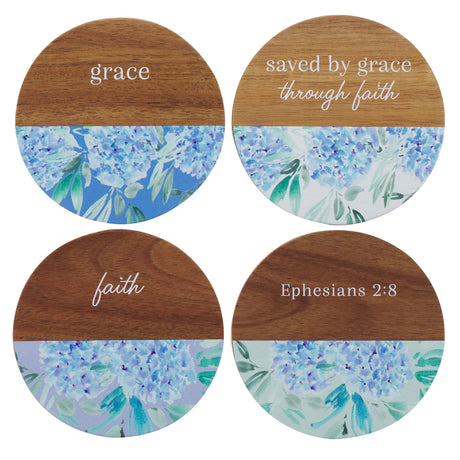 In stockRegular price R270.00Unit price /UnavailableSaved by Grace Through Faith 4-Piece Round Wooden Coaster Set