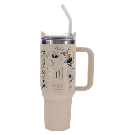 Be Still and Know That I Am God Large Stainless Steel Mug with Handle and Straw