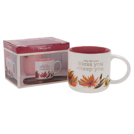 May the Lord Bless You and Keep You Floral Ceramic Mug with Pink Interior