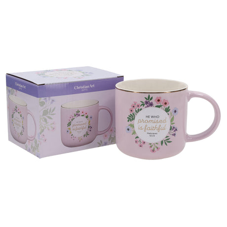 He Who Promised Is Faithful Pink Floral Ceramic Mug