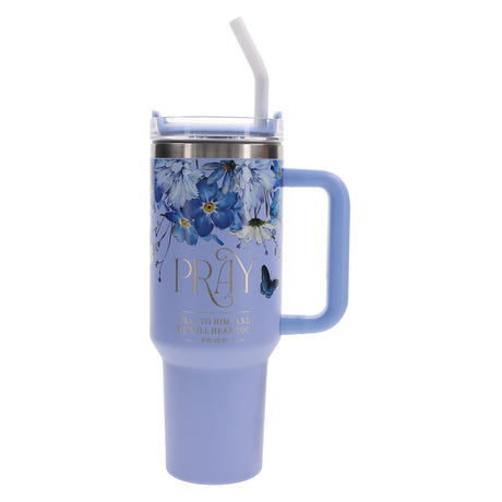 Pray to Him and He Will Hear You Large Stainless Steel Mug with Handle and Straw