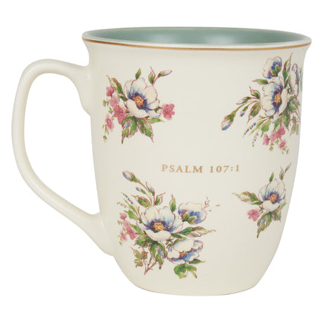 Give Thanks To The Lord Olive Interior Ceramic Mug - Psalms 107:1