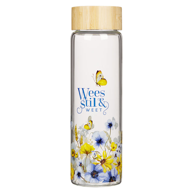 Wees Stil en Weet Afrikaans Glass Water Bottle with Bamboo Lid
