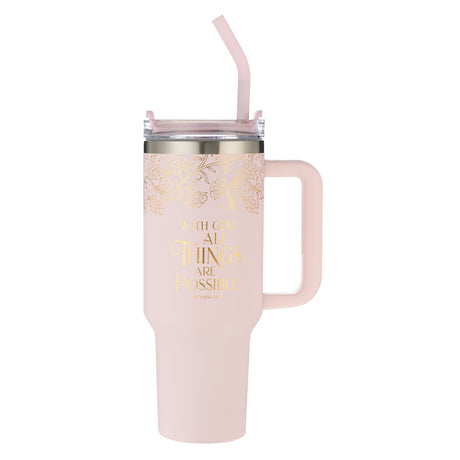 In stockRegular price R499.00Unit price /Unavailable With God All Things Are Possible Pink Large Stainless Steel Mug with Handle and Straw