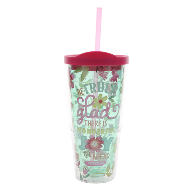 Be Truly Glad Plastic Travel Tumbler with Lid and Straw