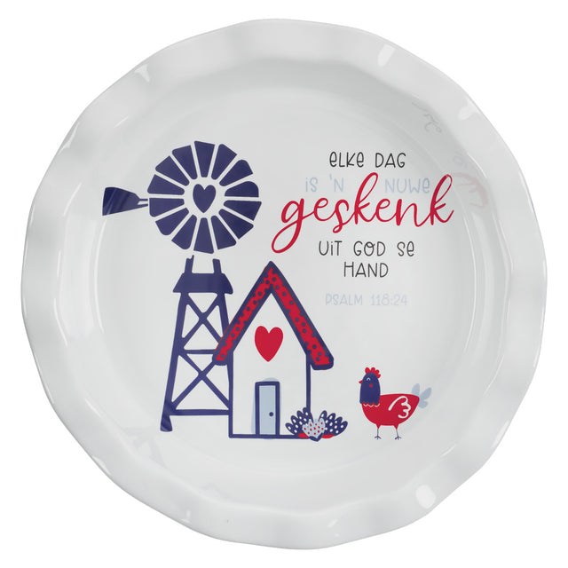 Consider giving the Elke Dag Is 'N Nuwe Geskenk Ceramic Pie Plate as a birthday gift to a friend or family member.
