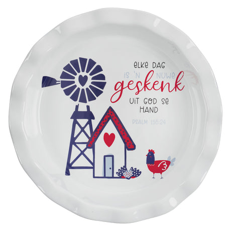 Low stock (15 units)Regular price R259.00Unit price /UnavailableElke Dag Is 'n Nuwe Geskenk Uit God Se Hand Afrikaans Ceramic Pie Plate - Psalms 118:24