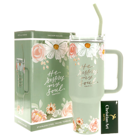 Very low stock (1 unit)Regular price R499.00Unit price /UnavailableHe Restores My Soul Large Stainless Steel Mug with Handle and Straw