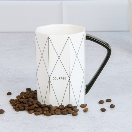 Courage Geometrical White And Black Ceramic Mug - Joshua 1:9