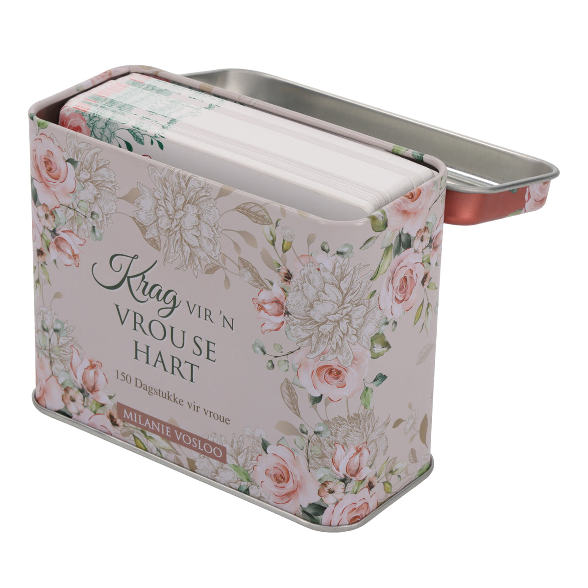 Krag vir ’n Vrou Se Hart Afrikaans Cards In Tin - 150 Dagstukke vir Vroue