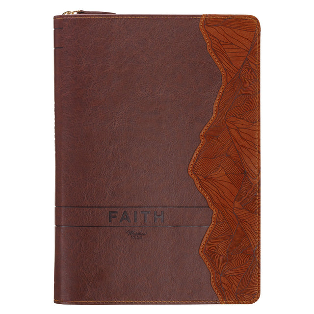Faith Mountains Brown Faux Leather Journal with Zipped Closure