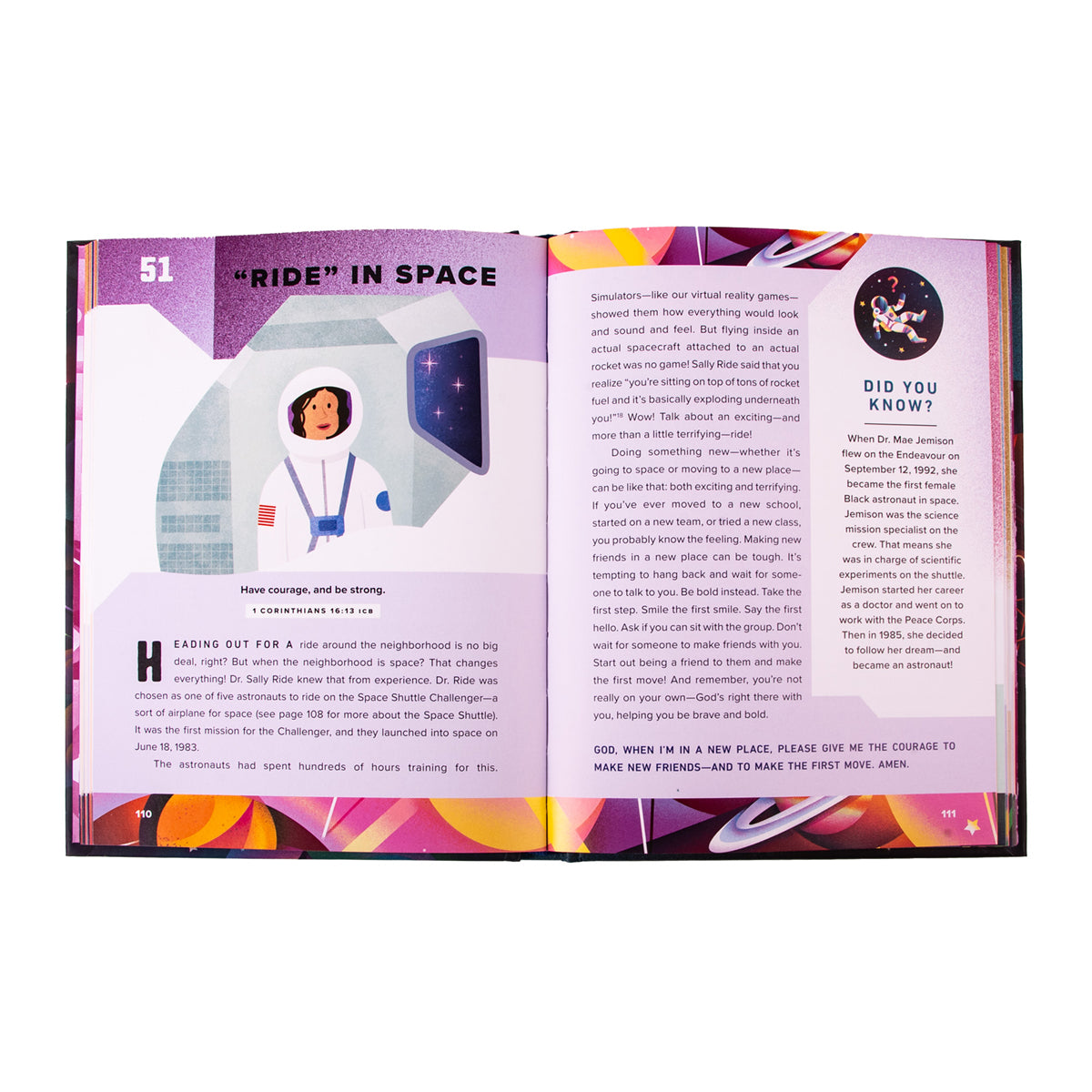 • Learn from courageous people, including Father Abraham, Buzz Aldrin, Neil Armstrong, Katherine Johnson, and many others