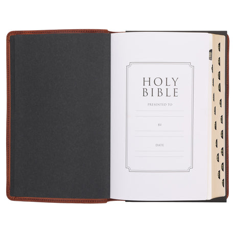 In stockSale price R679.15 Regular price R799.00Unit price /Unavailable KJV Tan & Brown Faux Leather Standard Bible Giant Print Red Letter