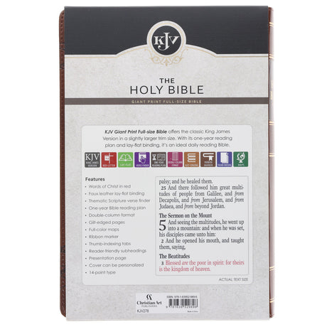 In stockRegular price R349.00Unit price /UnavailableKJV Tan & Brown Faux Leather Standard Bible Giant Print Red Letter