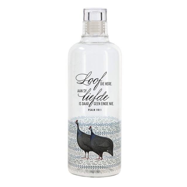Loof die Here, Aan Sy Liefde Is Daar Geen Einde Nie Afrikaans Glass Water Bottle