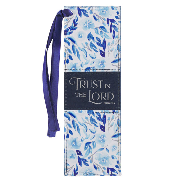 Trust in the Lord Blue Floral Faux Leather Bookmark