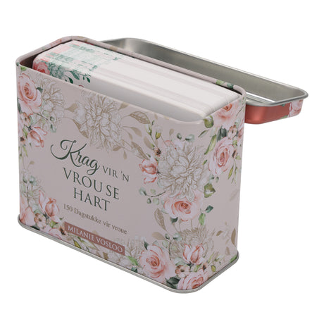 In stockSale price R29.00 Regular price R49.00Unit price /Unavailable Krag vir ’n Vrou Se Hart Afrikaans Cards In Tin - 150 Dagstukke vir Vroue
