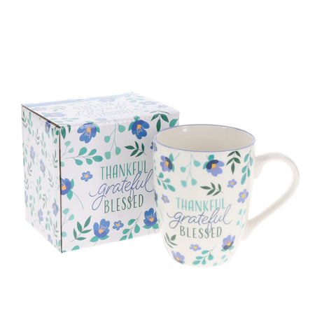 Start Each Day With A Grateful Heart Blue Ceramic Mug