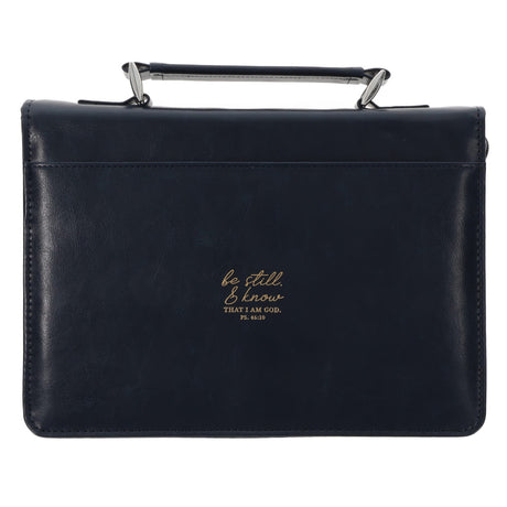 In stockSale price R99.00 Regular price R249.00Unit price /Unavailable Be Still and Know Embroidered Blue Faux Leather Bible Bag