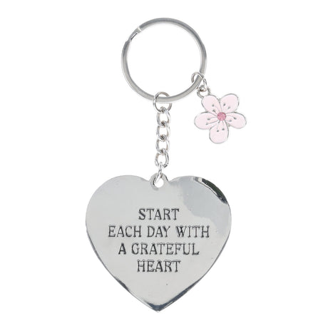 Start Each Day with a Grateful Heart Metal Key Ring with Charm