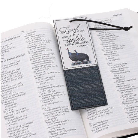 Loof die Here aan Sy Liefde Is Daar Geen Einde Nie Afrikaans Faux Leather Bookmark