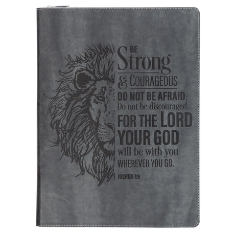 Be Strong & Courageous Grey Lion Faux Leather Portfolio Folder with Zip