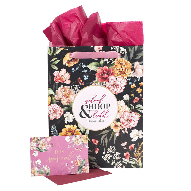 Geloof Hoop en Liefde Afrikaans Portrait Gift Bag with Card
