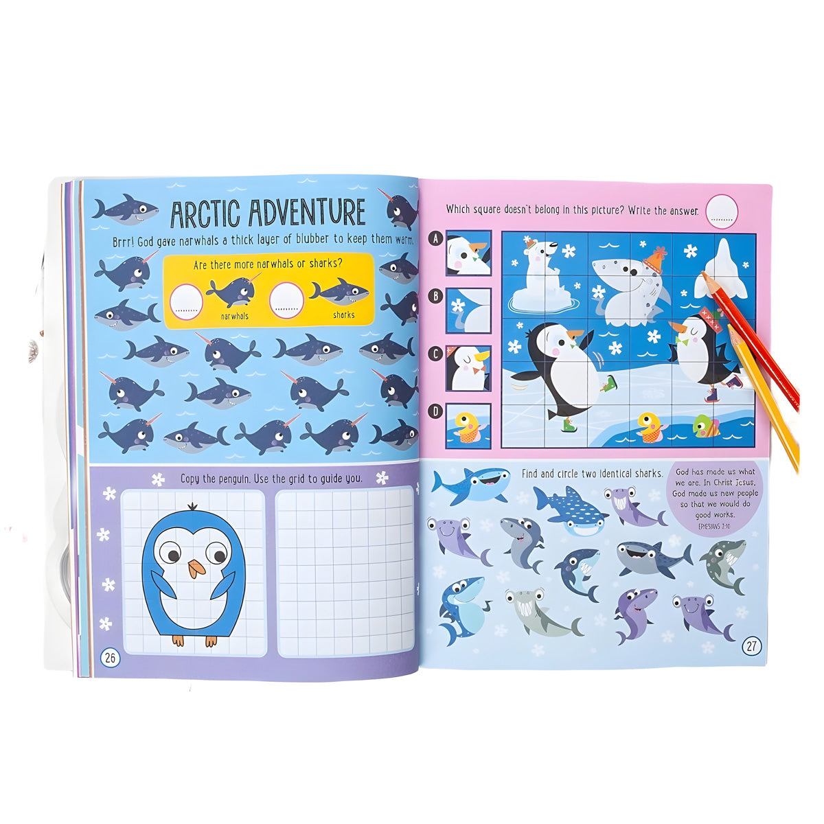 - Bright, bold illustrations and fun activities keep young children engaged and entertained