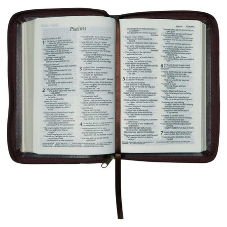 NLT Brown Faux Leather Flexcover Compact Bible With Zip