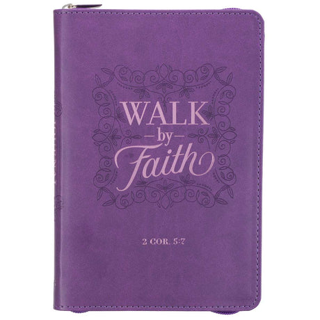 Walk by Faith Purple Faux Leather Journal with Zipped Closure