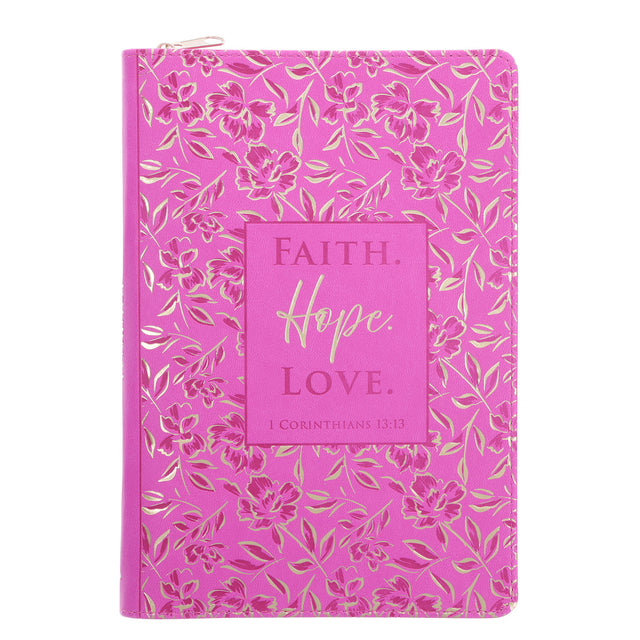 Faith Hope Love Pink Faux Leather Journal with Zipped Closure