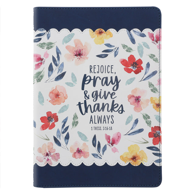 Set some time apart to journal your thoughts and prayers in this Rejoice, Pray and Give Thanks Always Faux Leather Journal.