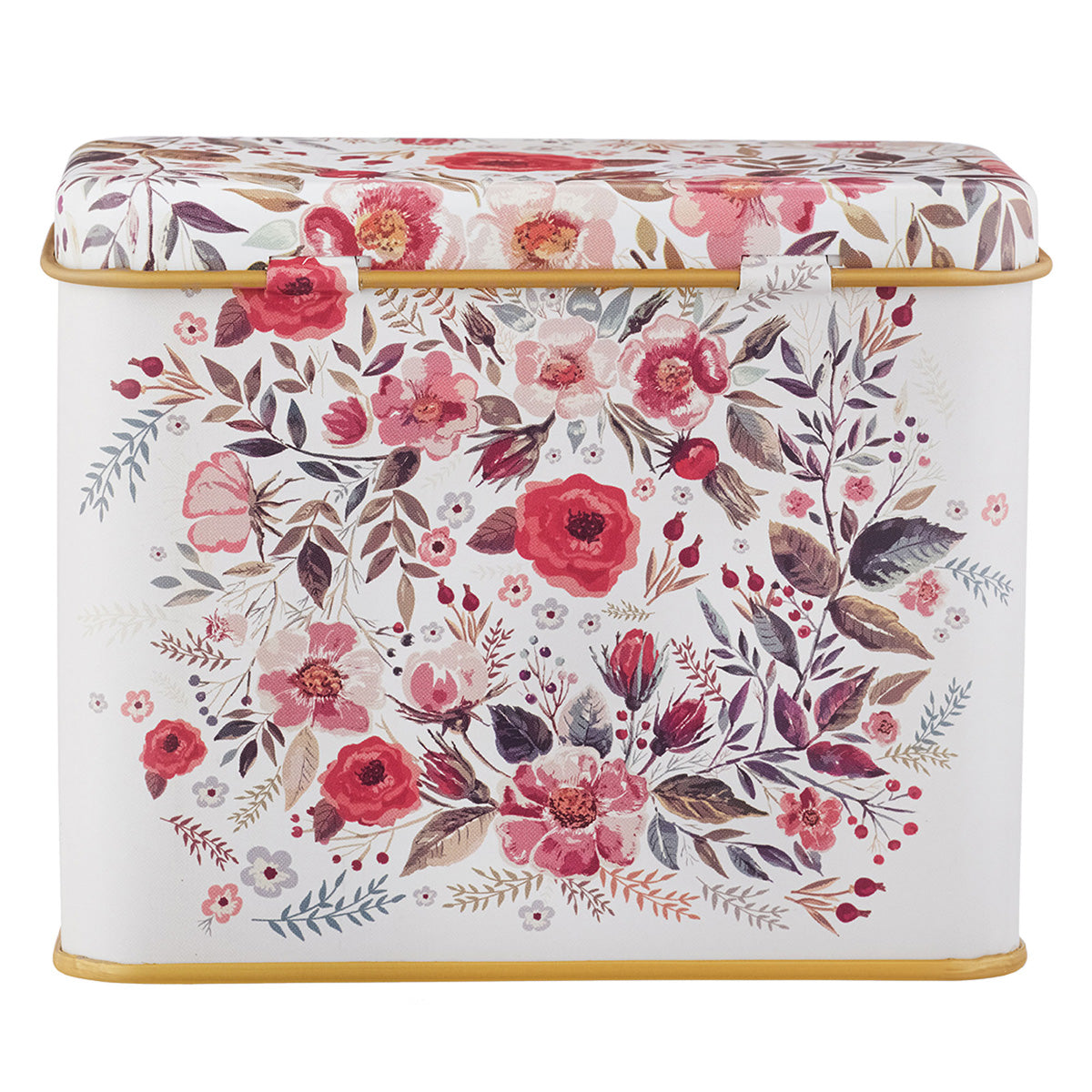 “My Prayer” durable matte tin is printed with watercolor floral patterns on its white body as well as on its white lid. It has a gold interior and gold edging around the lid and base. A gold file label holding a removable tab beautifully printed with “My Prayers” in a scripted font on the front of the tin. The cards within include a theme titled prayer on one side and a lined space to write your prayers or answered prayers on the other side.