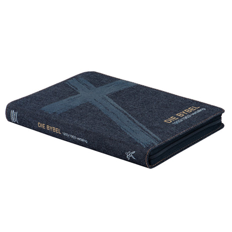 Afrikaans 1933/1953 Vertaling Kunsleer Denim Medium Naslaan Bybel Met Ritssluiter