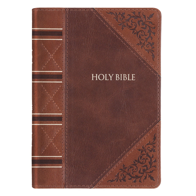 KJV Two-Tone Brown Faux Leather Compact Large Print Bible