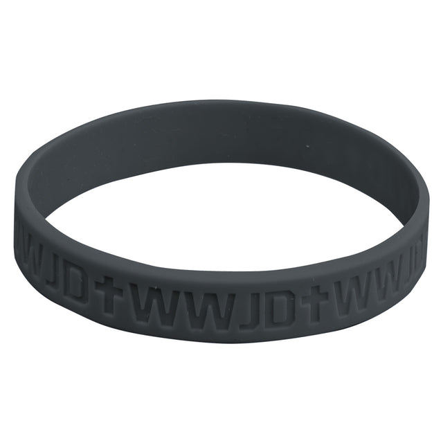 WWJD Charcoal Silicone Wristbands is backordered and will ship as soon as it is back in stock.