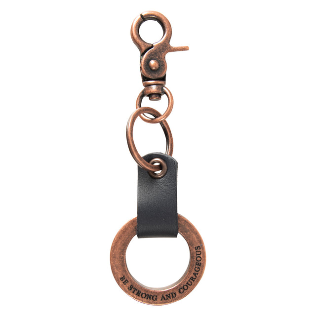 Be Strong and Courageous Metal Key Ring with Genuine Leather Detail