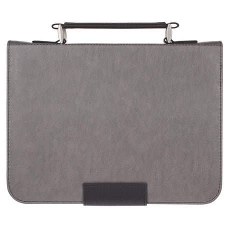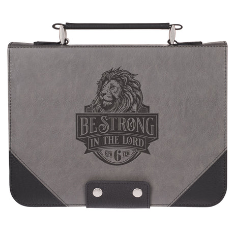 Be Strong in the Lord Grey and Black Faux Leather Loose Bible Cover