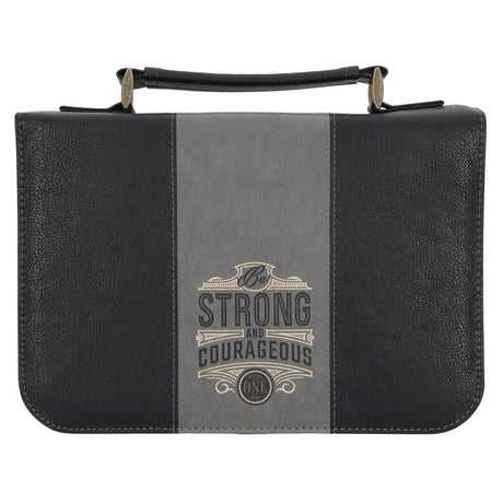 Be Strong and Courageous Black and Grey Faux Leather Bible Bag
