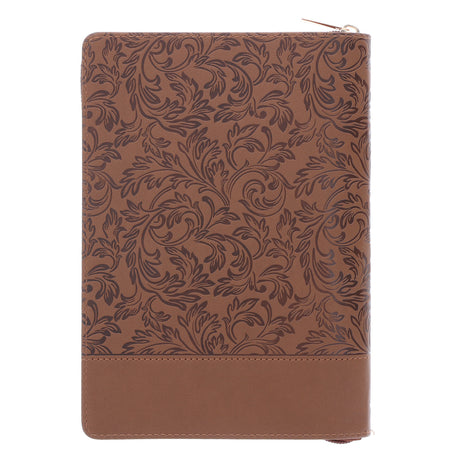 I Can Do All Things Through Him Brown Faux Leather Journal with Zipped Closure