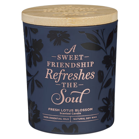 In stockRegular price R189.00Unit price /UnavailableA Sweet Friendship Refreshes the Soul Lotus Blossom Scented Candle with Bamboo Lid