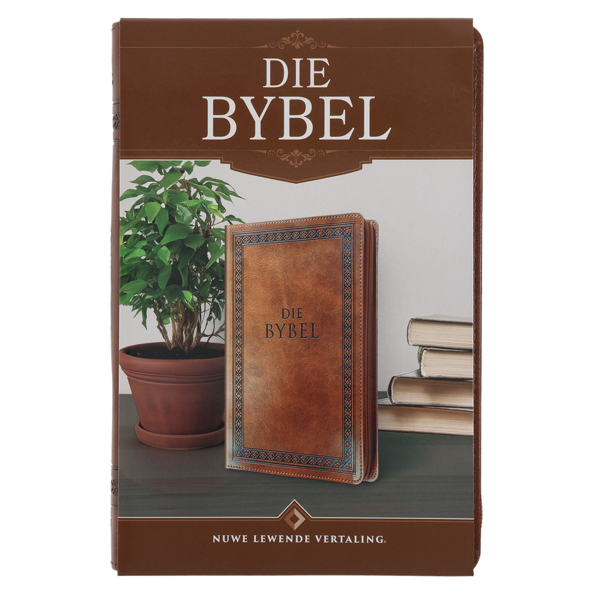 NLV Taan Bruin Kunsleer Standaard Bybel met Ritssluiter en Duimgrepe