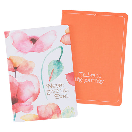 Never Give Up Ever Coral Poppies Two-Piece Notebook Set